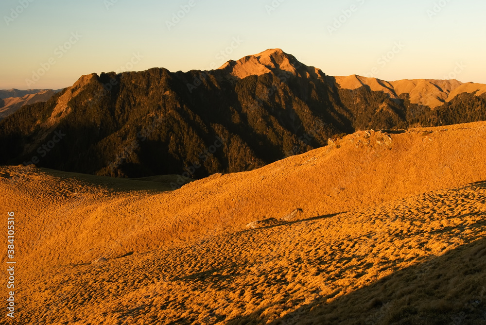 Fotografía The sunrise golden beautiful high mountain landscape.