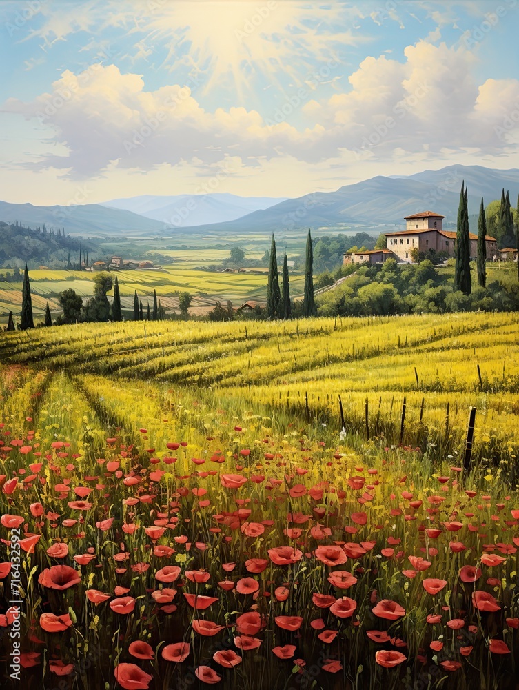 Fotografía Timeless Tuscan Vineyards: A Captivating Meadow Painting of Vineyard Grounds wit