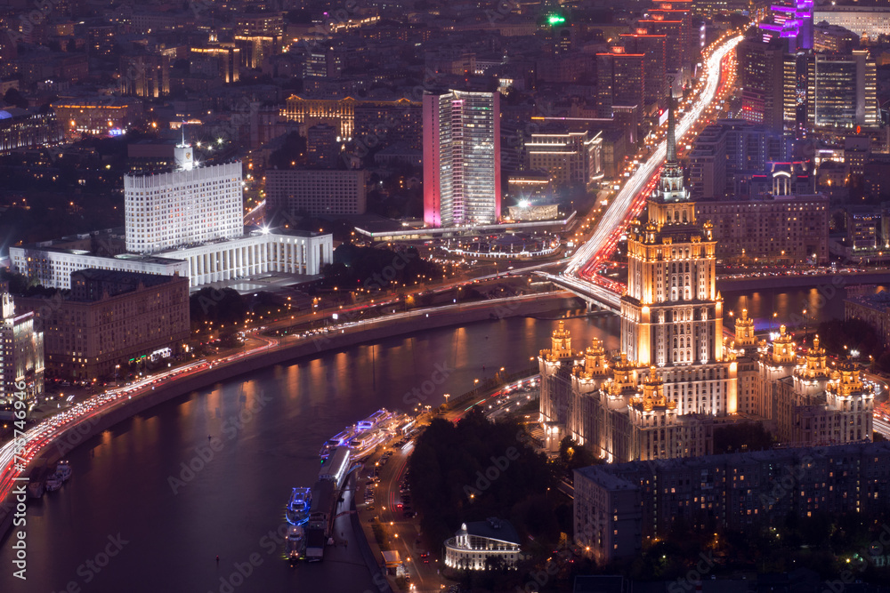 Fotografía Ukraine hotel, government building and New arbat street at night in Moscow, Russ
