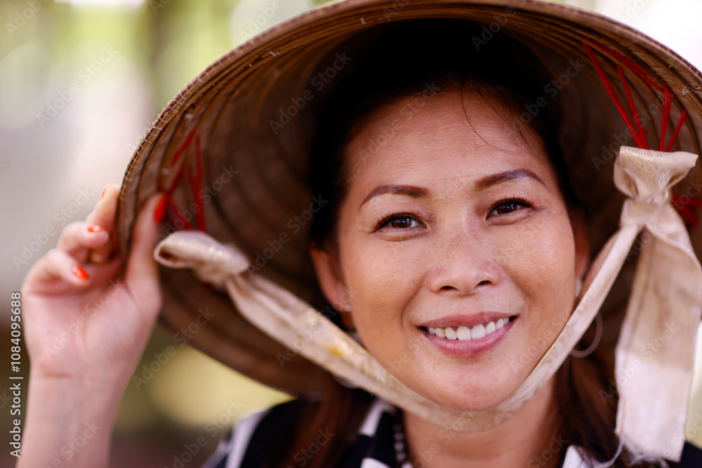 Fotografía Vietnamese woman wearing a tradional palm leaf conical hat