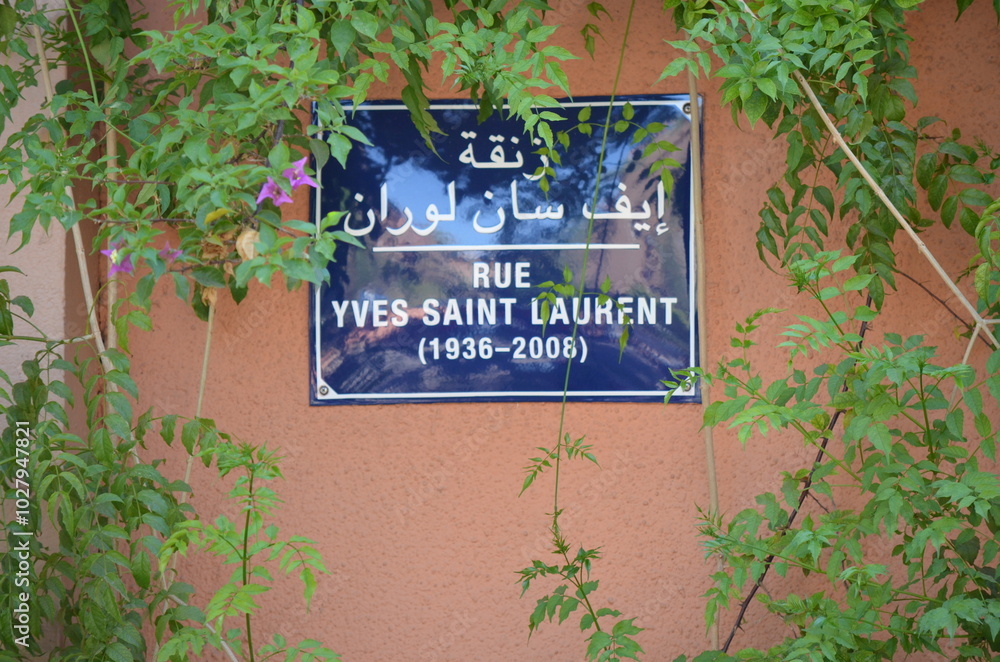Adhesivo para pared Street Sign for Rue Yves Saint Laurent Surrounded by Greenery in Marrakech