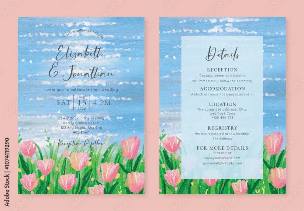 Adhesivo para pared Watercolor tulip ocean oceanscape wedding invitation
