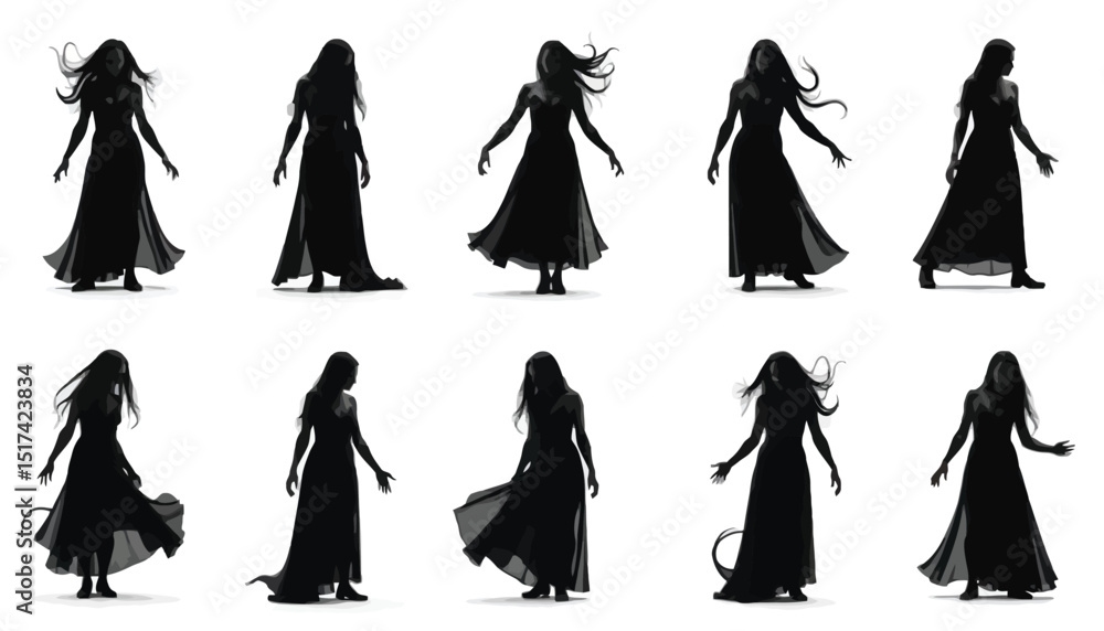 Adhesivo para pared Silhouettes of ethereal women in flowing gowns create a haunting and mysterious atmosphere