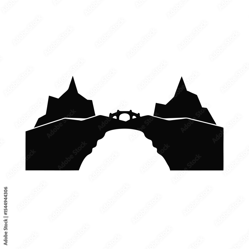 Adhesivo para pared Mysterious Mountain Bridge Silhouette Black and White Landscape Illustration