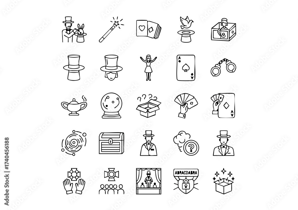Adhesivo para pared Abracadabra Vector Pack: Black & White Magic Icons, The Illusionist's Toolkit: T