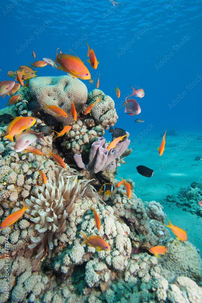 Adhesivo para pared Tropical fish swimming around a healthy tropical coral reef
