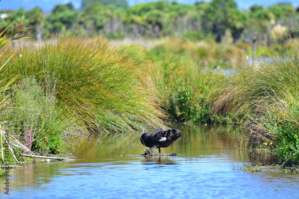 Adhesivo para pared Black swan in a pond in Travis Wetland Nature Heritage Park in Christchurch, New