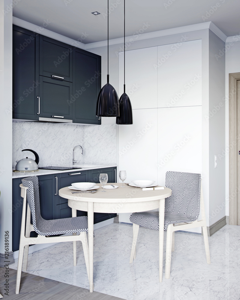Adhesivo para pared Крошечная кухня и обеденная зона в квартире-студии 28м^2