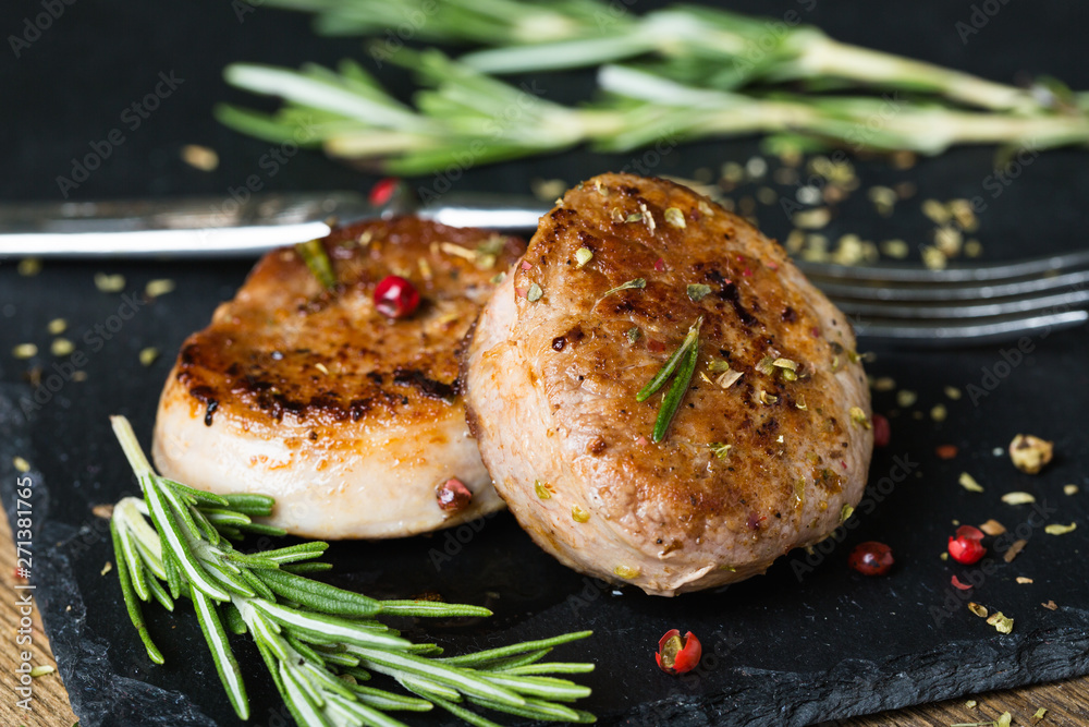 Adhesivo para pared Fried pork tenderloin medallions with spices and herbs