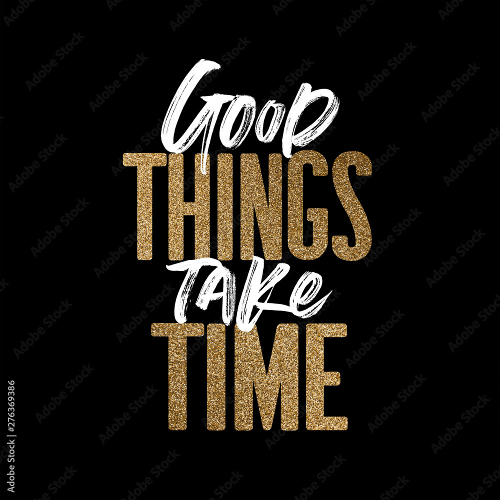 Adhesivo para pared Good things take time, gold and white inspirational motivation quote