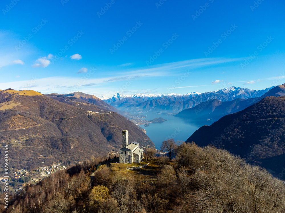 Adhesivo para pared Landscape of the San Zeno Hermitage from Valle Intelvi