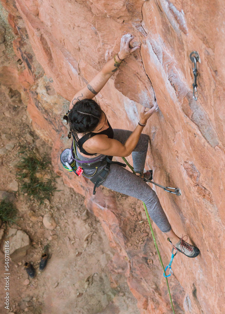 Adhesivo para pared Fit rock climber trying hard on small holds