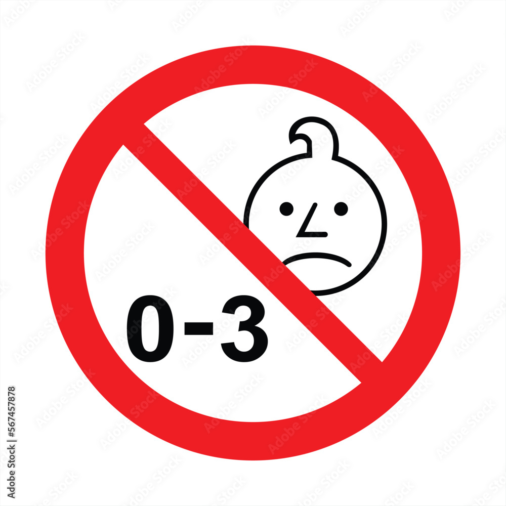 Adhesivo para pared Not suitable for children under 3 years symbol, Child silhouette in red circle,