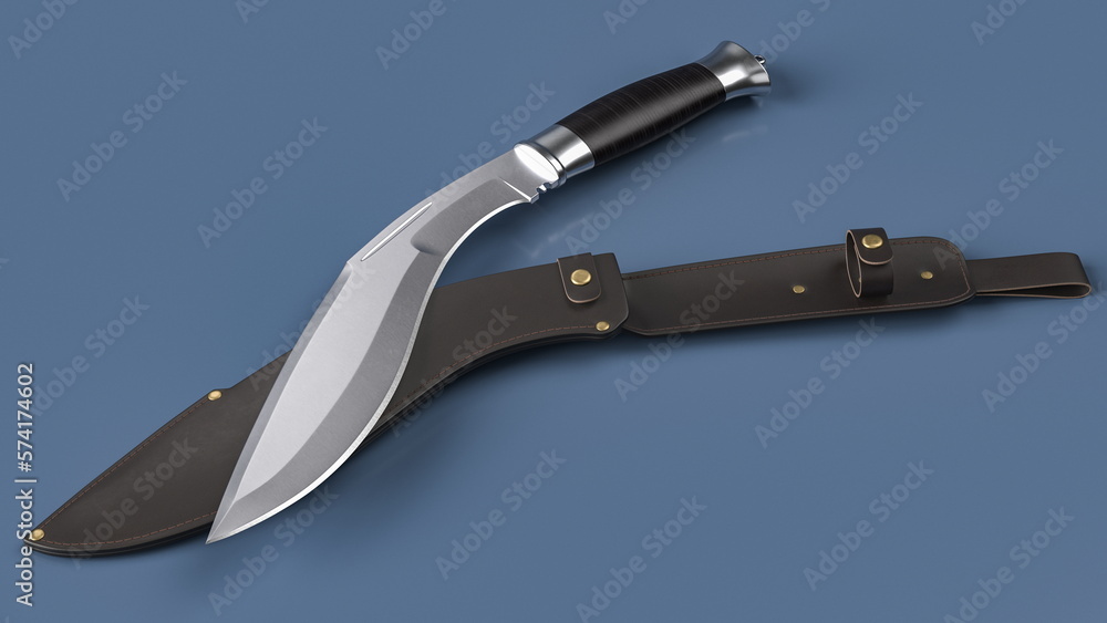 Adhesivo para pared Kukri knife and leather scabbard lying on a grey plane