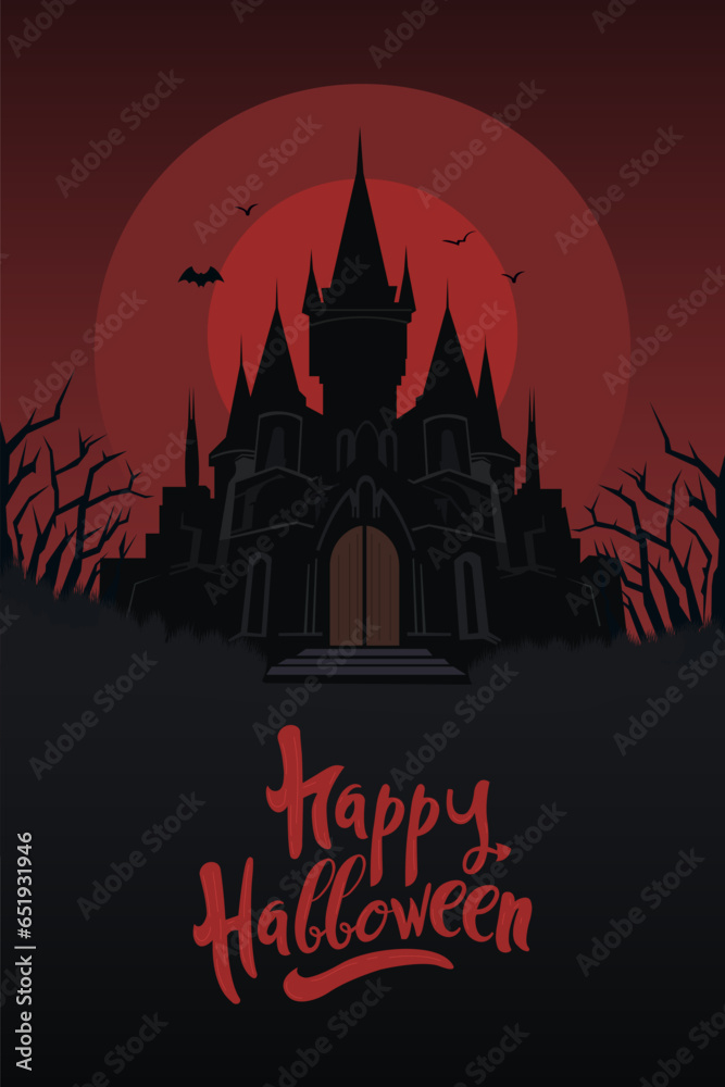 Adhesivo para pared Halloween vertical background with haunted house or castle, full moon and bats