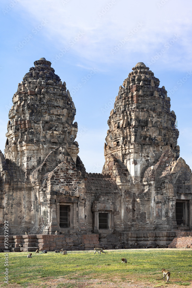 Adhesivo para pared Historical castle in Phra Prang Sam Yod, Lopburi Thailand lot of monkeys
