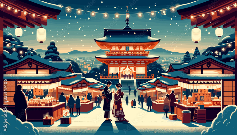Adhesivo para pared Concept of Kyoto in winter with snow. Vector illustration.