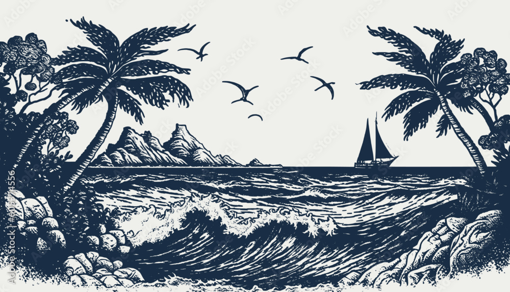 Fotografía VIntage retro engraving style sea nautical marine navy vacation landscape