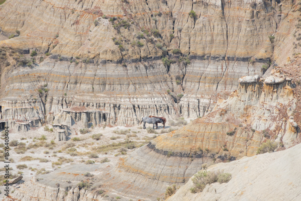 Fotografía Wild horses at theodore roosevelt national park, North Dakota, USA