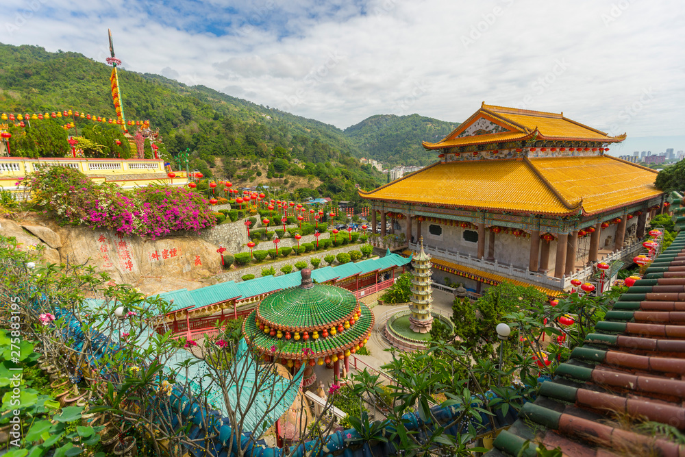 Fotografía Yellow roof of Kek Lok Si Temple with Penang cityscape in Penang island, Malaysi
