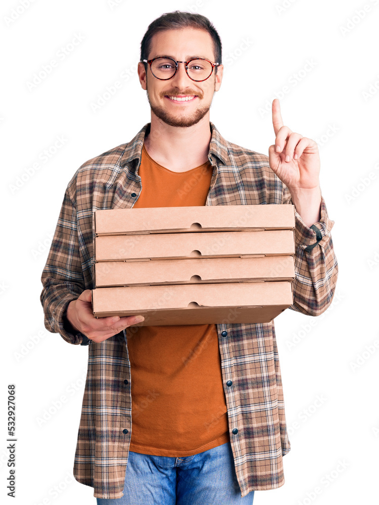 Fotografía Young handsome caucasian man holding delivery pizza box surprised with an idea o